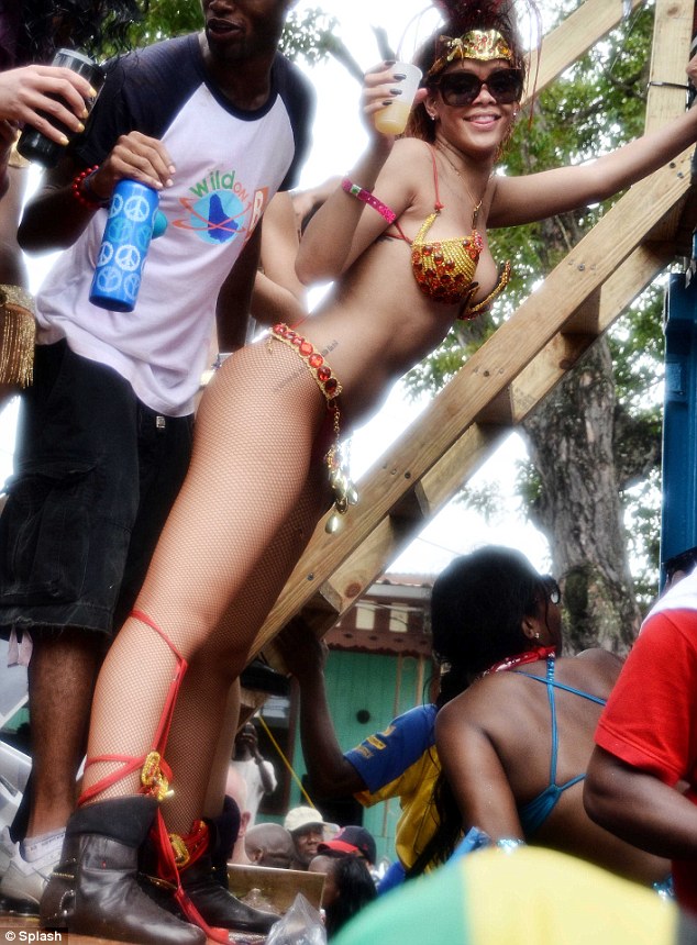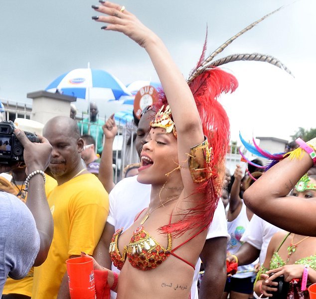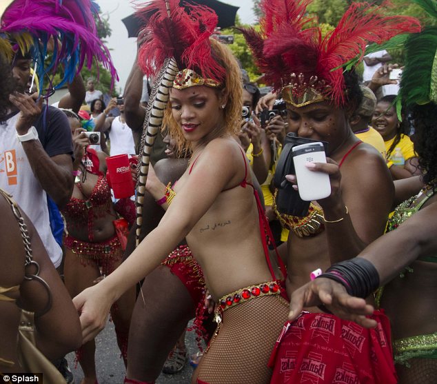 Por, Rihanna me pjesёmarrjen e saj kёsaj feste nё vendlindjen e saj, nuk ka tёrhequr vёmёndjen me kostumin ekzotik, por me kёrcimet provokuese me festuesit nё turmё. Kёngёtarja 23-vjeçare shumё pak la pёr tё imagjinuar me veshjen dhe kёrcimet e saja. (LajmeShqip.com)